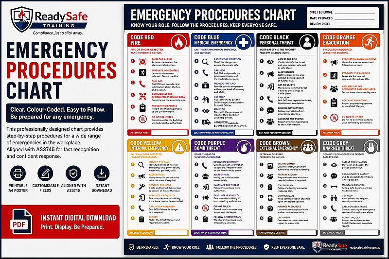 This Emergency Procedures Quick Reference Guide is designed to help you be prepared for any emergency situation. It provides step-by-step instructions aligned with AS3745 and offers comprehensive coverage for various workplace emergencies. With this printable guide, you can easily access clear and concise information to respond effectively in critical situations.